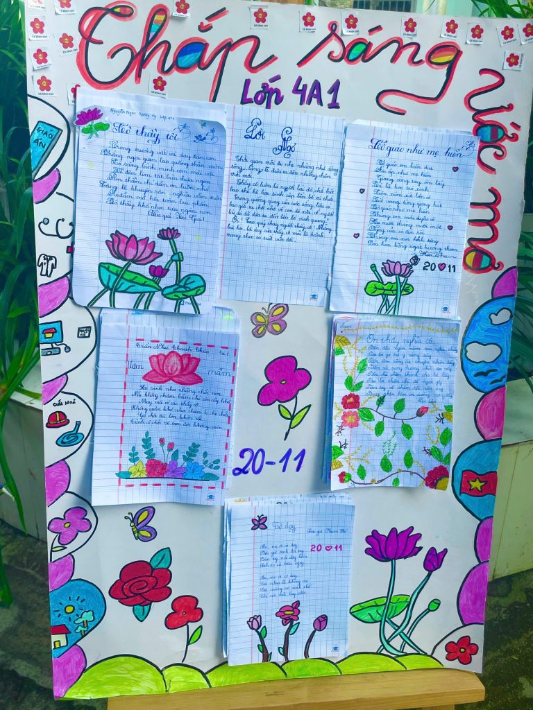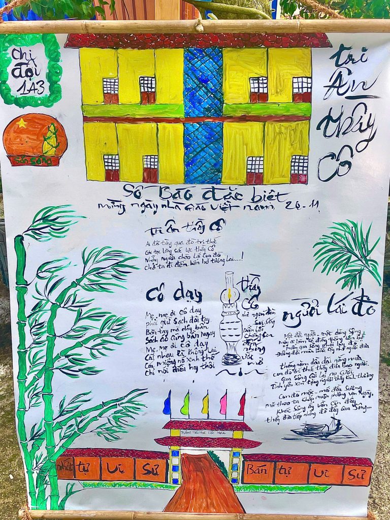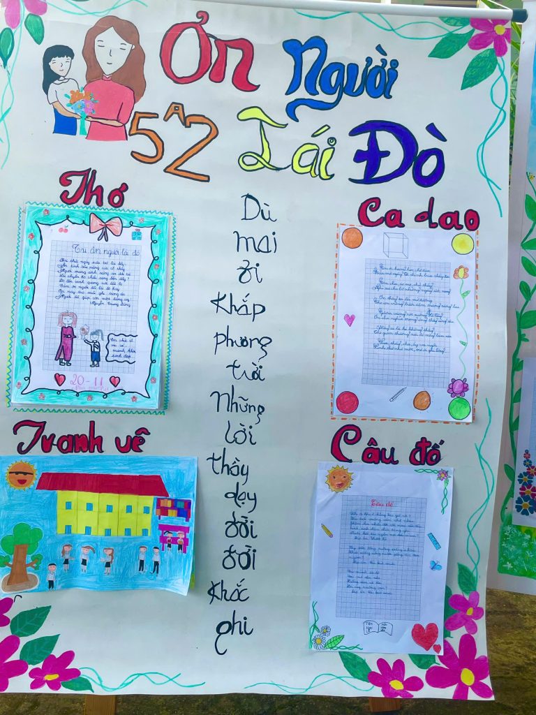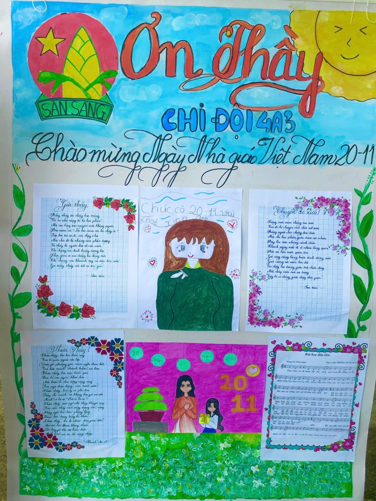 Làm báo tường và thi múa hát về chủ đề thầy cô và mái trường