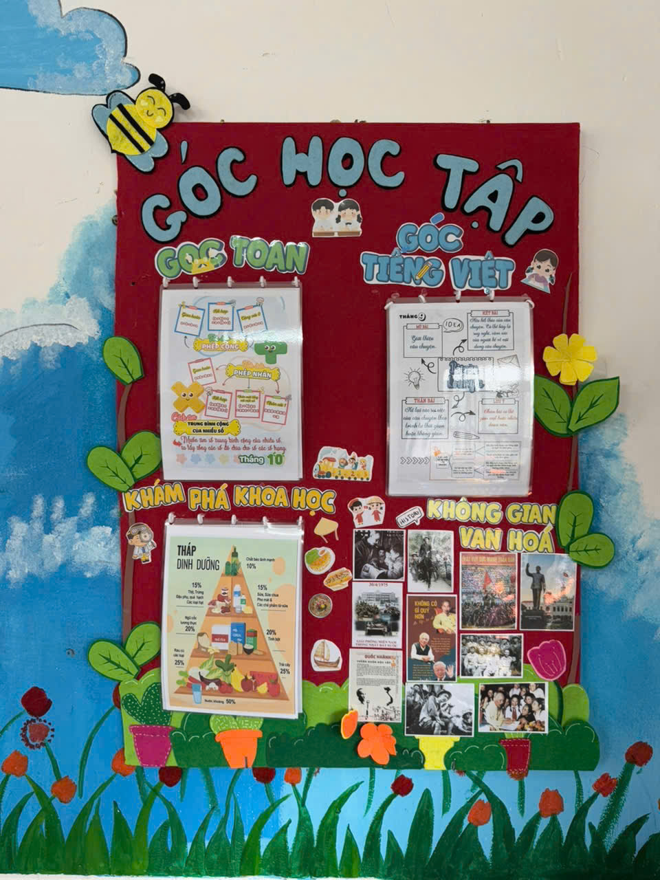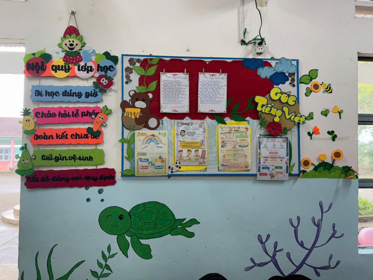 Có lớp lựa chọn phong cách nhẹ nhàng với tông màu pastel dịu mắt; có lớp lại sáng bừng sức sống bằng những mảng trang trí rực rỡ do chính các em học sinh cắt dán, tô vẽ. Góc học tập được sắp xếp gọn gàng, ngăn nắp như một thư viện thu nhỏ; góc trải nghiệm được chăm chút tỉ mỉ với những sản phẩm đầy sáng tạo; bảng sao chăm ngoan, quy tắc lớp học… đều thể hiện sự đồng lòng giữa giáo viên và học sinh.