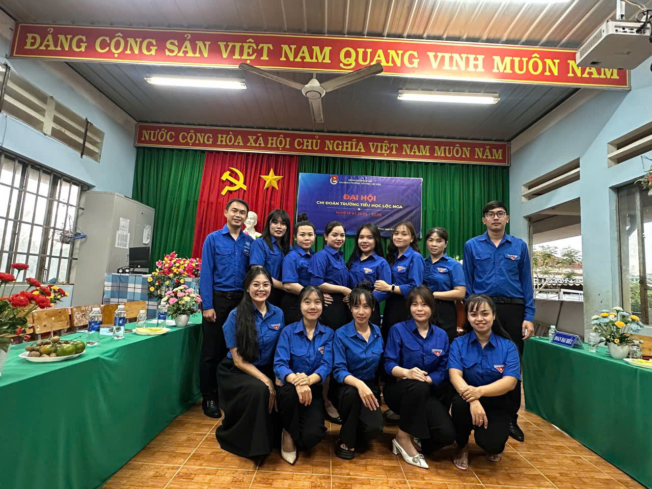Ngay từ sớm, không khí chuẩn bị cho Đại hội đã diễn ra khẩn trương, chu đáo. Cờ hoa, khẩu hiệu, biểu ngữ và sắc áo xanh tình nguyện đã làm rực sáng khuôn viên trường, thể hiện tinh thần sẵn sàng và tự hào của tuổi trẻ Lộc Nga.